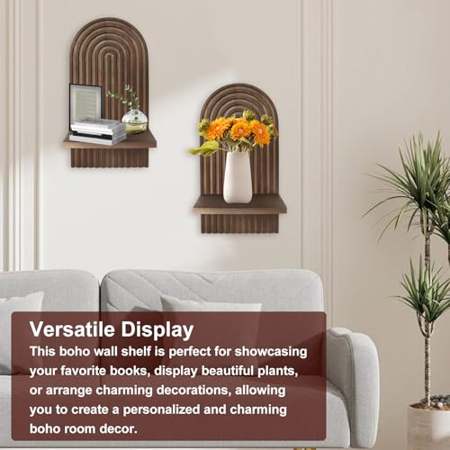 - عرض متعدد الاستخدامات -- قم بتغيير بيئة معيشتك مع رف الحائط البوهيمي متعدد الوظائف. استخدمه لعرض كتبك المفضلة أو صورك أو العناصر الزخرفية أو النباتات أو حتى كحامل شموع لإضفاء لمسة شخصية.
