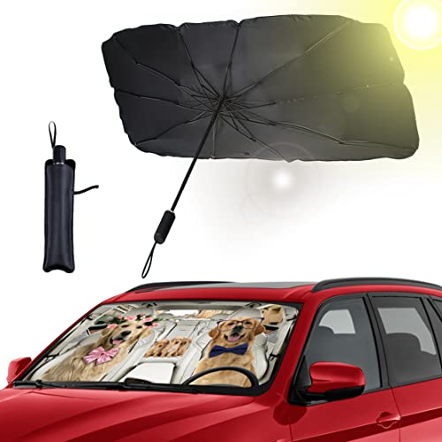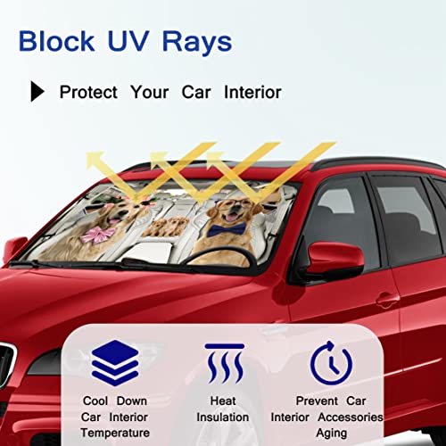 Tegfel - شمسيات لزجاج مقدمة السيارة من تيجفيل، واقية من الشمس بتصميم كلاب تقود سيارات الدفع الرباعي والسيدان والشاحنات، مظلة عاكسة للأشعة فوق البنفسجية مع شنطة تخزين، 55 × 31