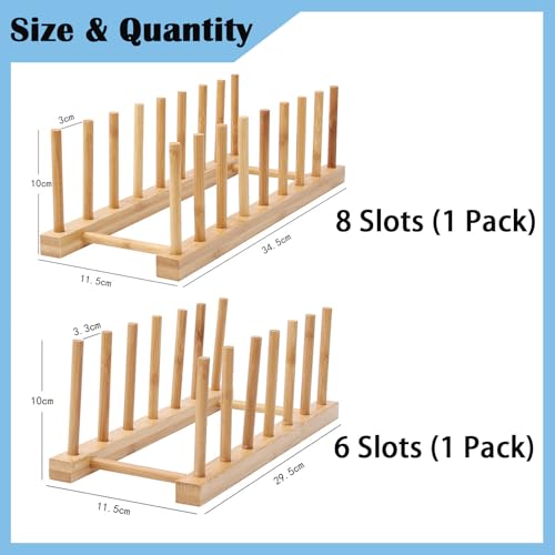 - [محتويات العبوة] ستحصل على عبوة واحدة من رف الأطباق الخشبي المكون من 6 فتحات من الخيزران وعبوة واحدة من رف الأطباق الخشبي المكون من 8 فتحات. يبلغ مقاس الرف ذو 6 فتحات 29 × 11.5 × 10 سم ويبلغ مقاس الرف ذو 8 فتحات 34.5 × 11.5 × 10 سم. الفجوة بين الفتحات 3 سم.