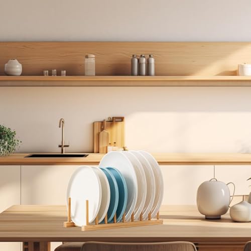- [مادة ممتازة] حامل الأطباق الخشبي الخاص بنا مصنوع من الخيزران الفاخر، قوي وموثوق وصديق للبيئة وسهل التنظيف، ليس من السهل أن يتشقق أو يتشوه، كما أنه مع معالجة خاصة على السطح، ناعم، مما يوفر لك تجربة استخدام جيدة.