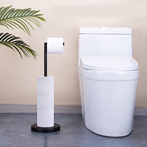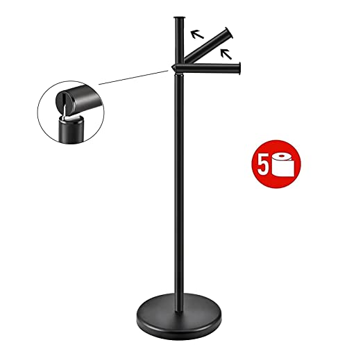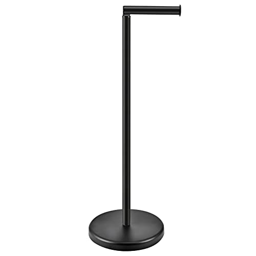TeinJaen - حامل ورق التواليت قائم بذاته اسود مع ارضية ثقيلة، تخزين ورق المرحاض، اكسسوارات حمام موفرة للمساحة