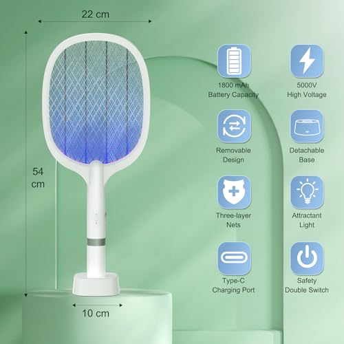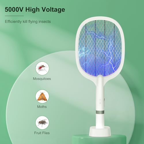 TEINNGO - صاعق ذباب كهربائي مع قاعدة شحن USB نوع C من تينجو، 5000 فولت، قاتل الحشرات للبعوض والذباب والنحل والعث