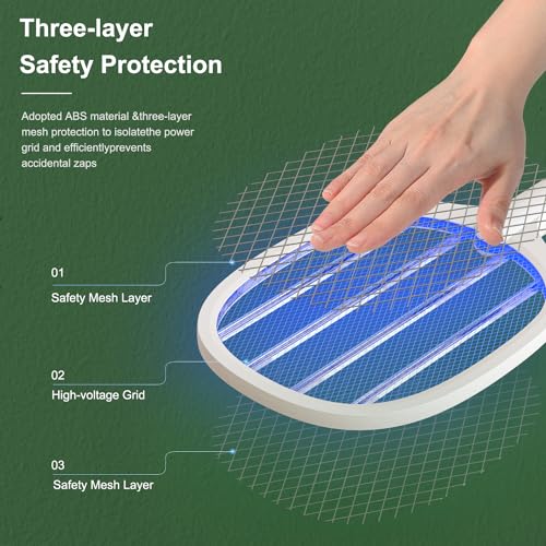 - يتميز مضرب الذباب الكهربائي هذا بجهد خرج يصل إلى 5000 فولت لقتل البعوض بسرعة. كما أنه يحتوي على وظيفة حماية ذكية من الشحن لحماية البطارية والشاحن من الشحن الزائد والتفريغ الزائد والمشاكل الأخرى.