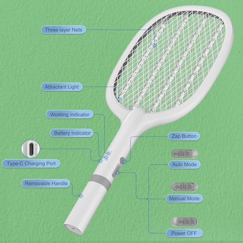 - مقبض مضرب الذباب الكهربائي هذا قابل للإزالة، لذلك يمكن استبداله والحفاظ عليه بسهولة مع تقليل التأثير البيئي للمنتج. التصميم القابل للإزالة يجعل من السهل تخزينها وحملها لتلبية الاحتياجات المختلفة للمستخدم.
