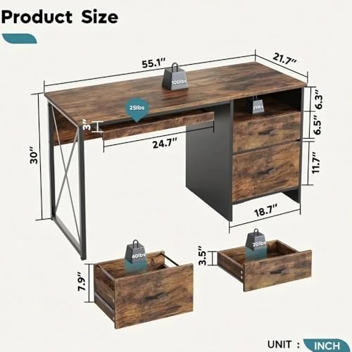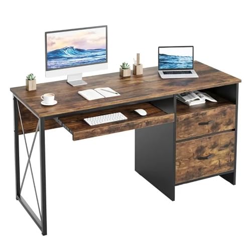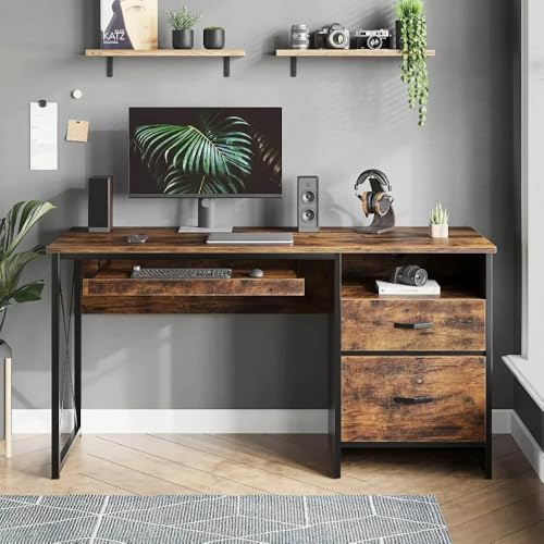 TEKAVO - طاولة مكتب للعمل من المنزل من تيكافو | طاولة كمبيوتر للمنزل مع درج للتخزين/يمكنك تركيبها بنفسك (طول 140 × عرض 55 × ارتفاع 76 سم)