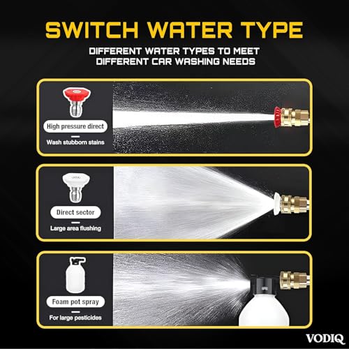 - تتميز غسالة الضغط بالماء هذه بفوهة متعددة الوظائف، مما يوفر أنماط رش مختلفة لاحتياجات التنظيف المختلفة. سواء كنت بحاجة إلى شطف لطيف أو نفاثة قوية للبقع الصعبة، فإن الفوهة القابلة للتعديل توفر المرونة للتعامل مع مجموعة من مهام التنظيف بفعالية.