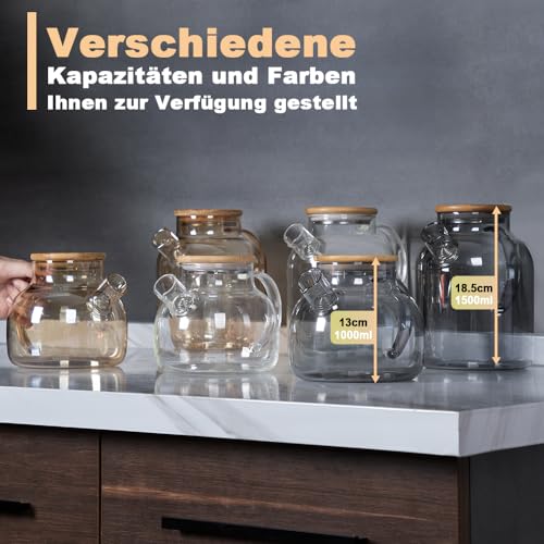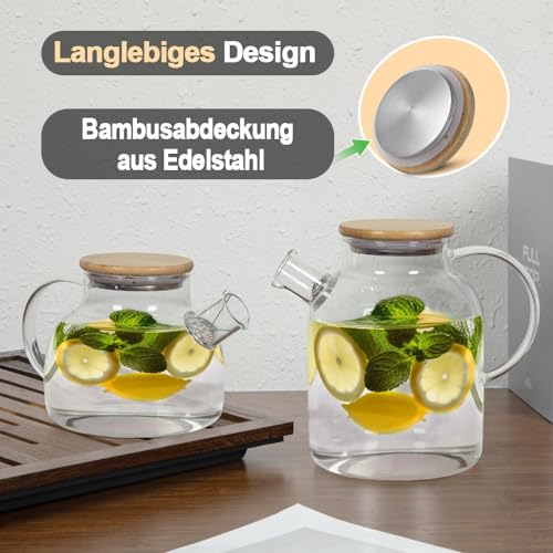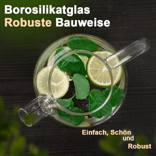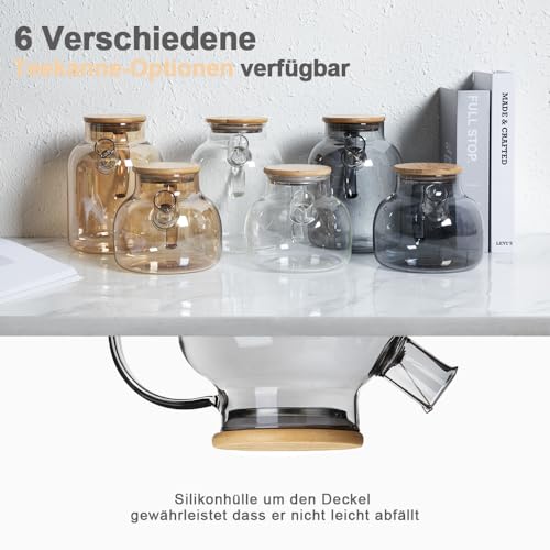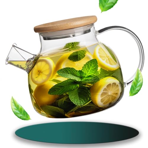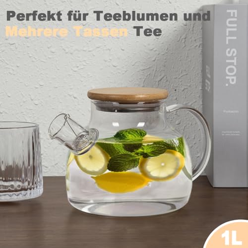 TELANKS - إبريق شاي زجاجي مع مصفاة داخلية، إبريق شاي مقاوم للحرارة عالي البورسيليكات، إبريق شاي زجاجي مع فلتر قابل للإزالة (1 لتر، أبيض)