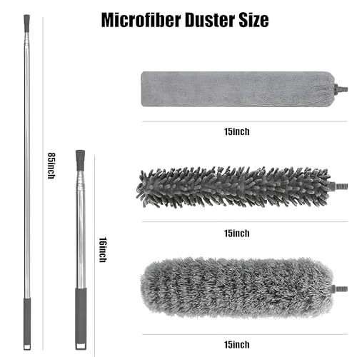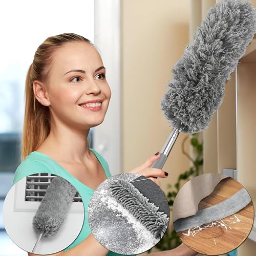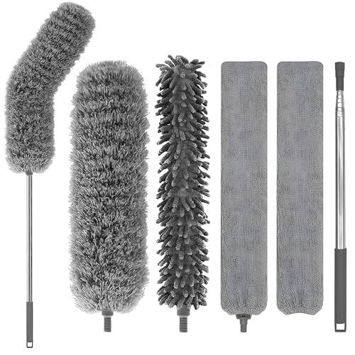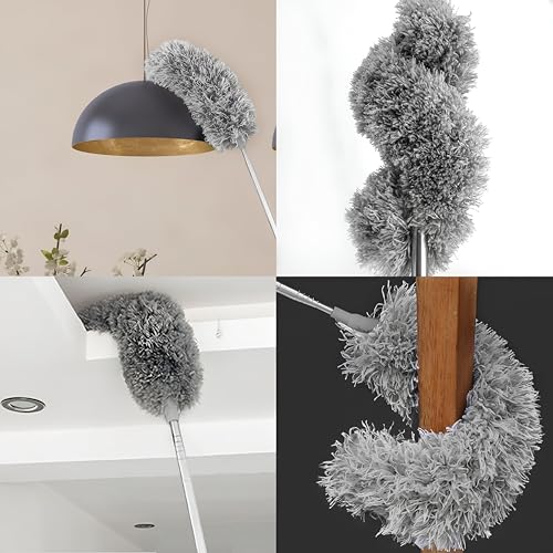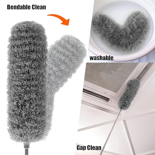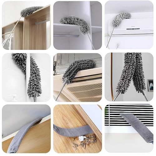 Generic - عمود غبار تلسكوبي - مقبض قابل للتمدد 254 سم مع 3 رؤوس مايكروفايبر قابلة للانحناء، قابل للغسل ومثالي للأسقف وفتحات تهوية السيارة والرفوف والمناطق التي يصعب الوصول إليها باللون الرمادي.