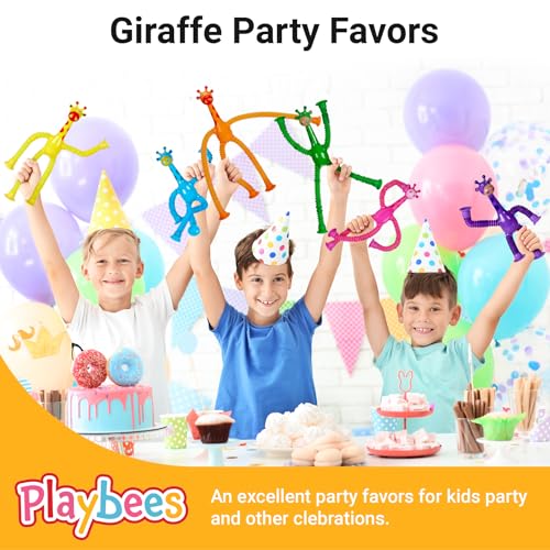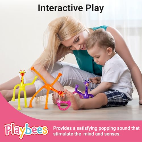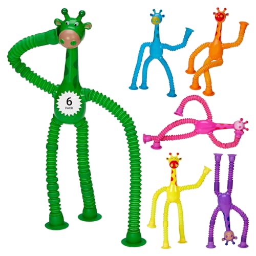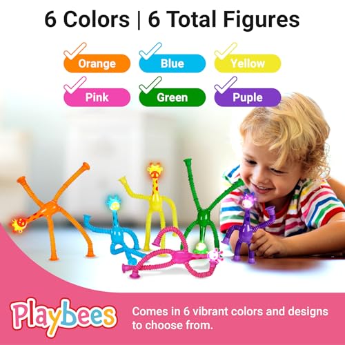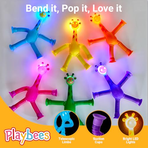 Playbees - ألعاب زرافة بقواعد لاصقة تلسكوبية للاطفال الصغار في المطاعم وطاولة العشاء، أنابيب بوب قابلة للتمدد مع أضواء ليد، ألعاب للاطفال الذين يعانون من القلق من التوحد للأعمار من عمر 3 إلى 5، عبوة من 6 قطع