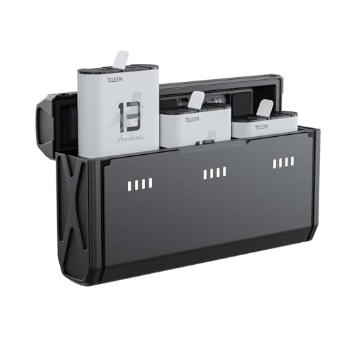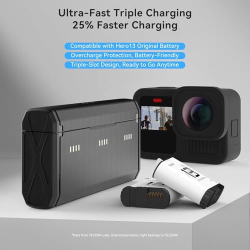 TELESIN - تيليسن شاحن بطارية اندورو لجو برو هيرو 13، بطاريات تدوم طويلا كحافظة شحن سريع اصلية + حافظة شحن سريع للجيب لملحقات جو برو 13، عبوة من قطعتين بلون اسود
