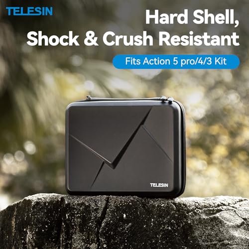 TELESIN - تيليسن شنطة حمل اوسمو اكشن 5 لملحقات دي جيه اي اكشن 5 برو، شنطة سفر بهيكل صلب مقاوم للماء لكاميرا دي جيه اي اوسمو اكشن 5 برو/اكشن 4/اكشن 3، ملحقات كاميرا اكشن