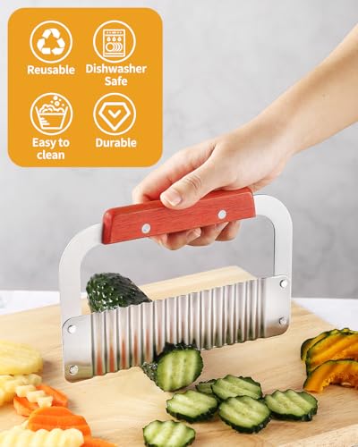 Tellshun - تيلشون قطاعة مجعدة من الستانلس ستيل لتقطيع البطاطس شديدة التحمل مع مقبض خشبي للخضروات والجزر
