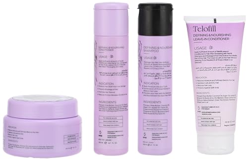 - مجموعة الشعر المجعد (شامبو 200 مل بلسم 200 مل قناع شعر 300 مل بلسم يترك في 200 مل) من تيلوفيل.