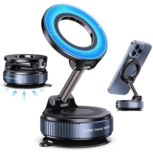 - حامل موبايل مغناطيسي ثوري بالشفط يحتضن مستقبل حوامل الموبايل في السيارة مع تقنية الشفط المبتكرة الخاصة بنا. يلتصق الحامل بسهولة بالزجاج أو لوحة القيادة أو أي سطح أملس - لا يحتاج إلى أدوات! تضمن الالتواء البسيط قبضة آمنة.