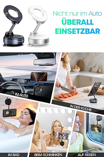 Telvesse - حامل موبايل مغناطيسي للسيارة من تيلفيس، [كوب شفط فائق] حامل كوب شفط مغناطيسي قابل للطي والتمديد، [قابل للتعديل 360 درجة] يثبت بدون استخدام اليدين على السيارة/صالة الالعاب الرياضية/المراة (اسود)