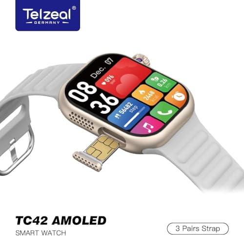 Generic - ساعة ذكية تلزيل TC42 شبكة الجيل الخامس 5G اموليد مع شريحة اتصال وكاميرا مدمجة، تجربة متكاملة مع شاشة اموليد HD وكاميرا مخفية للاتصال بشريحة اتصال مستقلة بزر جانبي، مساحة 64GB وذاكرة رام 6GB