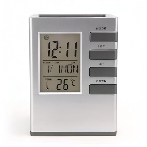Generic - حامل أقلام مع ساعة رقمية ومنبه وعرض لدرجة الحرارة لإدارة الوقت بشكل مريح في المنزل أو المكتب