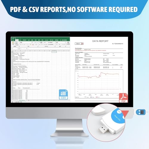 - تقارير تلقائية، لا تحتاج إلى برامج: قم بتوصيل مسجل درجة الحرارة بجهاز كمبيوتر عبر منفذ USB، وستحصل على تقارير بي دي اف سي اس في يتم إنشاؤها تلقائيًا بدون أي برنامج؛ إذا كان التقرير بحاجة إلى حماية، يرجى تعيين كلمة المرور الخاصة بك عبر البرنامج المجاني.
