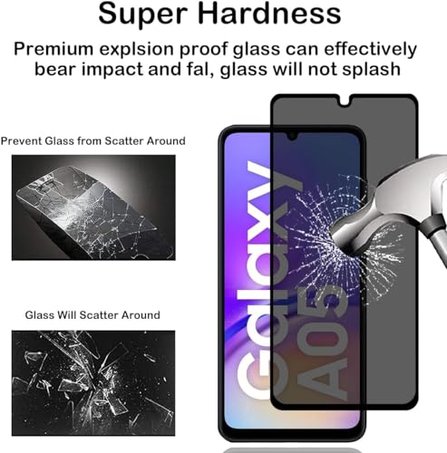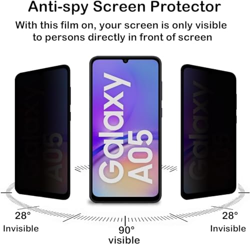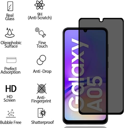 Zubitech - شاشة حماية خصوصية من زجاج مقوى بدرجة صلابة 9H ومقاومة للخدش ومضادة للتجسس ولا تشكل فقاعات لموبايل سامسونج جالاكسي A05 من زوبيتيك
