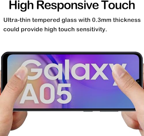 - [حساسة للمس] بفضل التركيبة الزجاجية، ينزلق إصبعك بسهولة على شاشة حماية موبايل سامسونج جالاكسي A05 من زجاج مقوى، كما لو كنت تستخدم الشاشة الأصلية. يحافظ الزجاج فائق النحافة على حساسية شاشة اللمس التي تعمل باللمس للاستجابة بدقة للمس.
