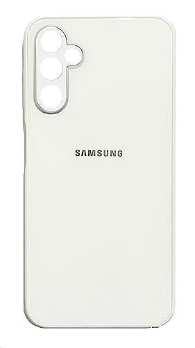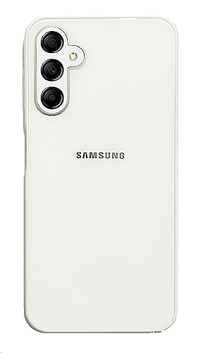 Generic - جراب حماية خلفي مقاوم للخدش مصنوع من الزجاج المقوى لموبايل سامسونج جالاكسي A14 شبكة الجيل الرابع 4G للصدمات بولي يوريثين للحرارة بحواف سيليكون ممتصة ابيض