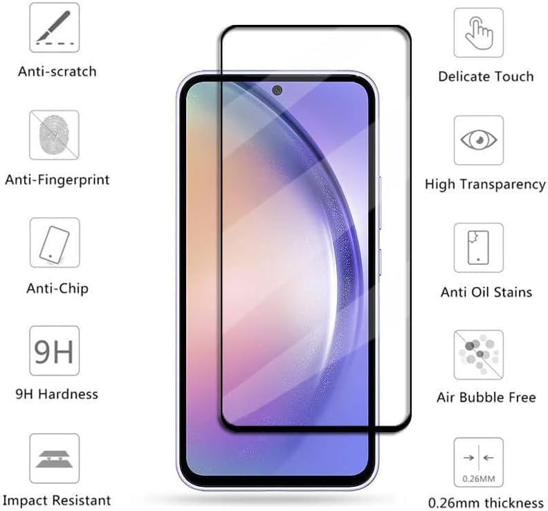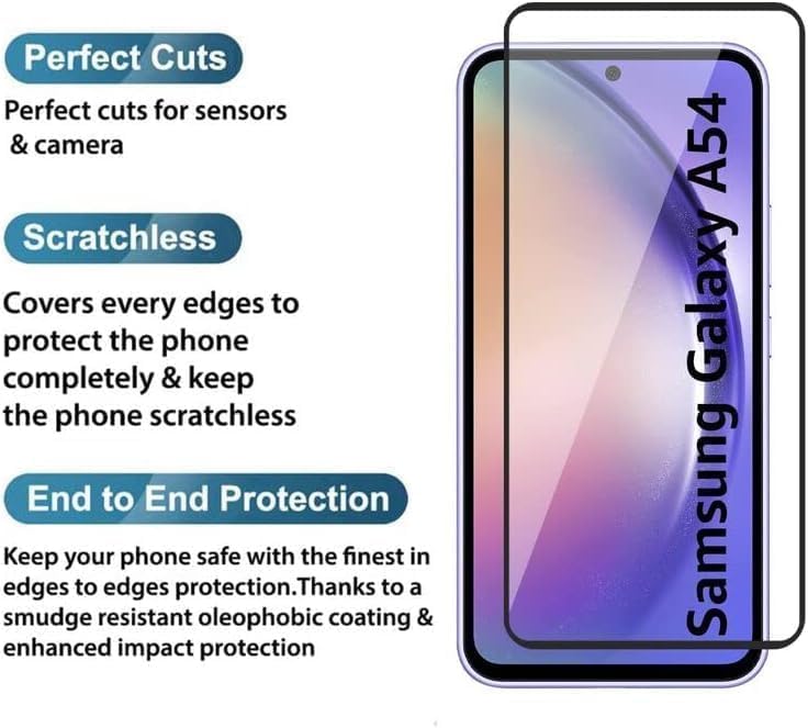 Generic - شاشة حماية مضادة للخدش من الزجاج المقوى ودرجة صلابة 9 مع تغطية كاملة متوافقة مع موبايل سامسونج جالاكسي A54