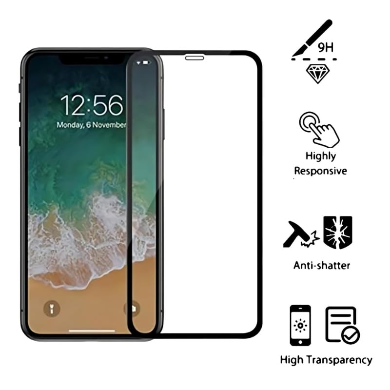 Generic - شاشة حماية من الزجاج المقوى بدرجة صلابة 9 بتغطية كاملة فائقة الوضوح وخالية من الفقاعات وسهلة التركيب وحساسية لمس عالية متوافقة مع موبايل آيفون XS ماكس، شفاف