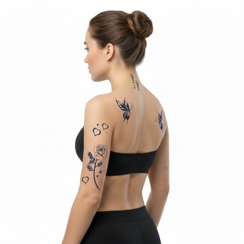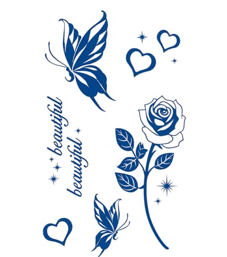 Generic - ملصقات تاتو مؤقت - تصاميم فراشة ووردة وقلب - مقاومة للماء وتدوم طويلا للنساء والبنات