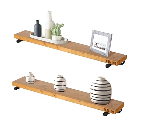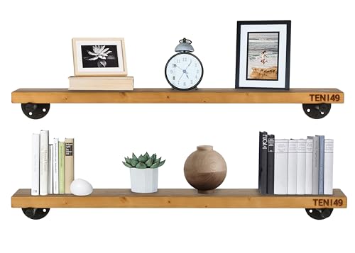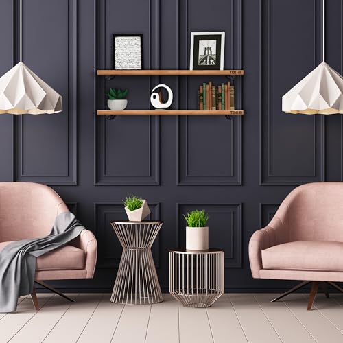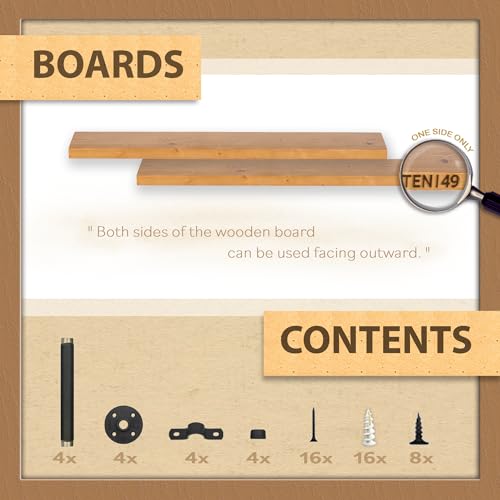 TEN49 - تين 49 رف خشبي صناعي - ارفف حائط من خشب الجوز بتصميم ريفي خاص 36 انش مع انابيب حديدية - عائمة للديكور الداخلي المعاصر دعامات انبوبية - كتب بنمط بيت المزرعة مجموعة قطعتين