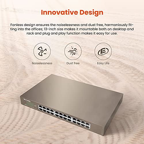 - 【خيارات تركيب متعددة الاستخدامات】يدعم مفتاح الشبكة المكون من 24 منفذًا سطح المكتب أو التثبيت على الحائط أو حامل الرف، ويمكنك وضعه في المكان المناسب وفقًا لاستخدامك