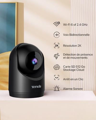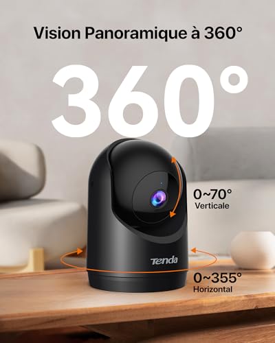 Tenda - كاميرا مراقبة داخلية CP3 V3.0 دقة 2K واي فاي 6، دوران 360 درجة مع صوت ثنائي الاتجاه ورؤية ليلية وتقنية كشف الحركة ومنبهات وإشعارات فورية، للأطفال والحيوانات الأليفة من تيندا