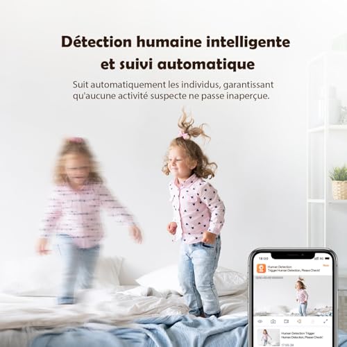 - كشف ذكي وتنبيهات في الوقت الفعلي: تميز الكاميرا الأشخاص عن الأشياء وتنبهك بالحركة المُشكك بها عبر التطبيق. فعِّل إنذارًا صوتيًا لردع المتطفلين أو اختر التتبع التلقائي لحركة الأشخاص.