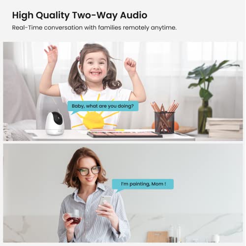 - 【فيديو فائق الدقة بدقة 2 كيه مع مزيد من التفاصيل】كاميرا مراقبة لاسلكية داخلية بدقة 2K HD مع كشف الحركة وصوت ثنائي الاتجاه يسمح لك بمراقبة منزلك ليلاً ونهارًا ككاميرا للحيوانات الأليفة أو كاميرا مربية الأطفال.