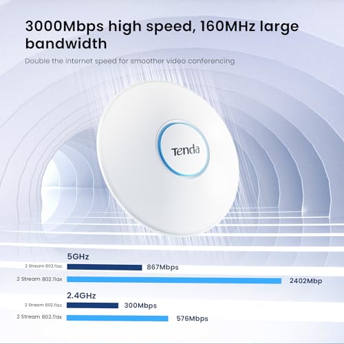 Tenda - نقطة وصول للسقف AX3000 واي فاي 6 (i27) بتجوال سلس مع وظائف WPA3 وMU-MIMO وحاقن PoE ومحول تيار مستمر متضمن من تيندا