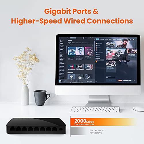 - 【سرعة جيغابيت】-توفير منفذ قابل للتكيف 8 سرعة 10/100/1000 ميجابت في الثانية، جميع المنافذ تعمل على توجيه الأسلاك، تصل إلى 1000 ميجابت في الثانية