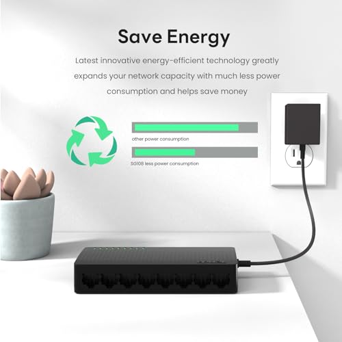 - تصميم سهل الاستخدام: يوفر SG108 اتصالات سريعة وسهلة بنظام الشبكة والراوتر والمودم، مما يوفر منافذ سلكية إضافية لأجهزة اللاب توب ووحدات تحكم الألعاب والطابعات وغير ذلك الكثير