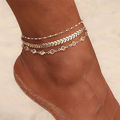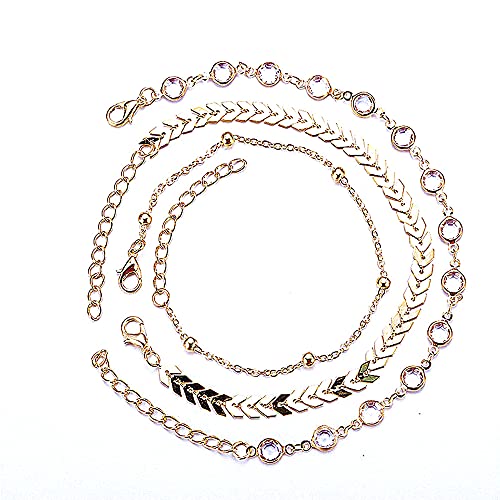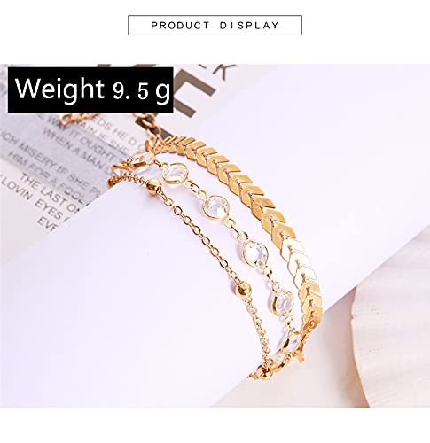 tenghong2021 - تنجونج 2021 خلخال بوهو متعدد الطبقات مطلي بالذهب عيار 14 قيراط للنساء (8.5 انش)