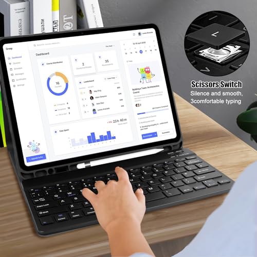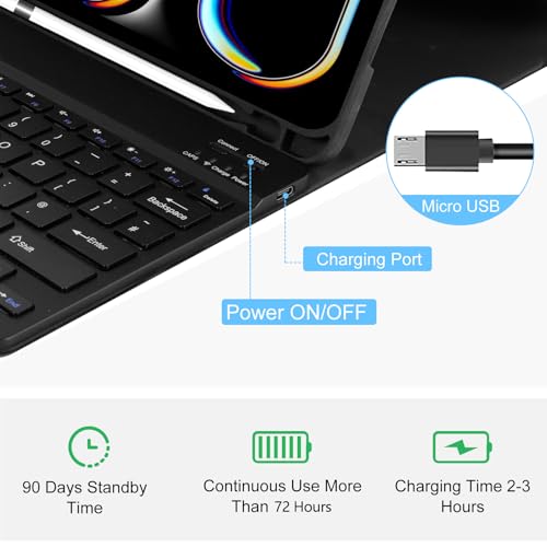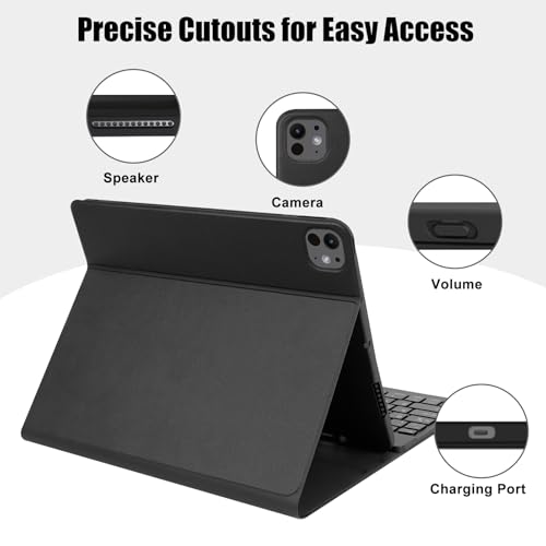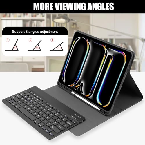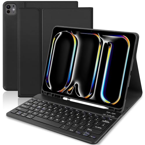 TENGWUDZ - حافظة لوحة مفاتيح لجهاز اي باد برو 13 بوصة 2024 M4 من تينج وودز، جراب حماية رفيع مع حامل قلم ولوحة مفاتيح لاسلكية قابلة للفصل لاي باد برو 13 بوصة (لون أسود)