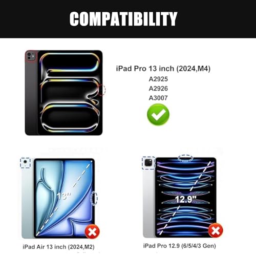 - 【حافظة لوحة مفاتيح لجهاز اي باد برو 13 2024】تتوافق حافظة لوحة مفاتيح الاي باد هذه مع اي باد برو 13 بوصة M4 2024 (A2925/A2926/A3007)، يرجى التأكد من موديل التابلت الخاص بك قبل الشراء.