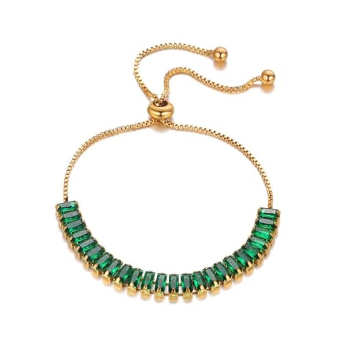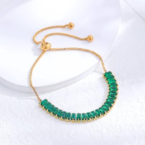 Generic - سوار تنس نسائي بأحجار زركون خضراء – ستانلس ستيل مطلي بالذهب عيار 14، تصميم أنيق قابل للتعديل، هدية مثالية للبنات والنساء