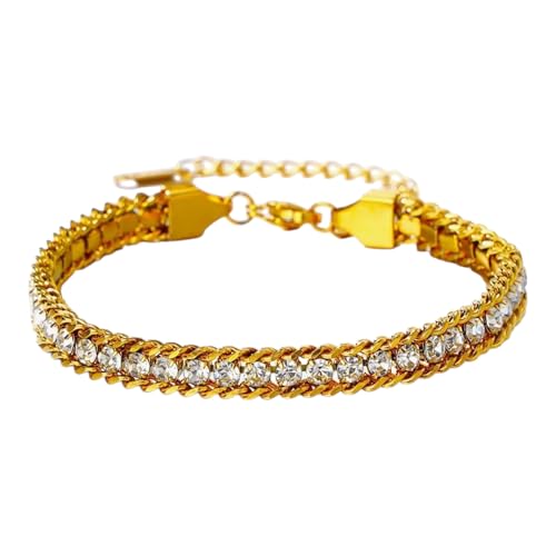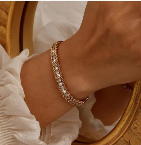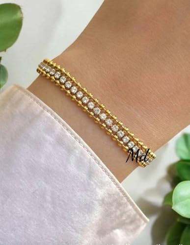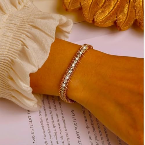 Generic - أساور تنس للنساء - سوار أنيق من حلقات كوبية مطلي بالذهب ومرصع مكعب 3 مم، أساور ذهبية ، هدايا زفاف وحفلات التخرج