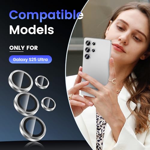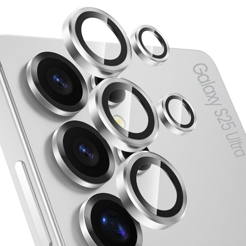 - 【حماية آمنة】توفر الحلقة المعدنية المصنوعة من الألومنيوم المستخدم في صناعة الطائرات وواقي الكاميرا الفردي المصنوع من الزجاج المقوى بدرجة صلابة 9 طبقة إضافية من الحماية لعدسة كاميرا موبايل جالاكسي S25 الترا الخاص بك. يحمي واقي العدسة هذا عدسة كاميرا الموبايل بكل فعالية من الخدوش والغبار والبقع أثناء الاستخدام اليومي.