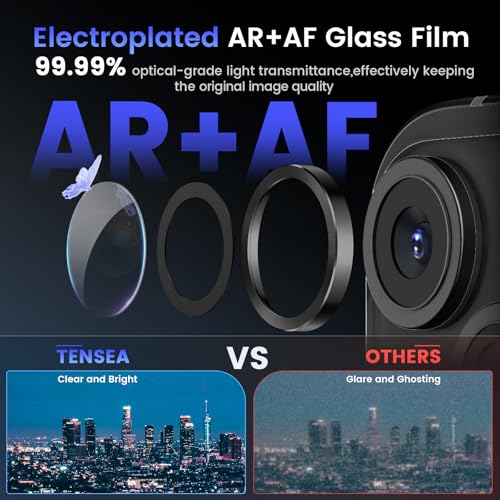 Tensea - واقي عدسة الكاميرا لموبايل آيفون 15/ آيفون 15 بلس من تينسيا، واقي شاشة من الزجاج المقوى بدرجة صلابة 9، شفاف HD، حلقة معدنية فردية لموبايل آيفون 15 6.1 بوصة/ آيفون 15 بلس 6.7 بوصة 2023
