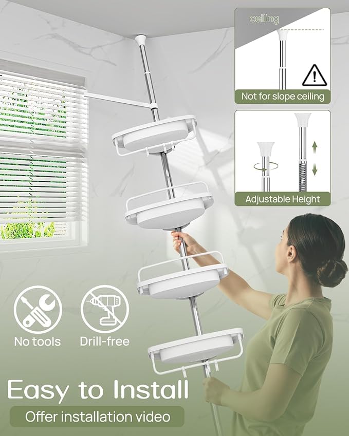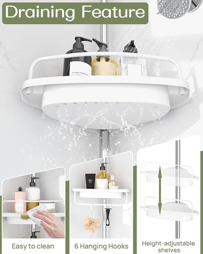 Generic - حامل دش بعمود شد، ابيض، ارتفاع قابل للتعديل 320 سم، منظم تخزين زاوية الحمام مع ميزة التصريف، 4 ارفف، 6 خطافات