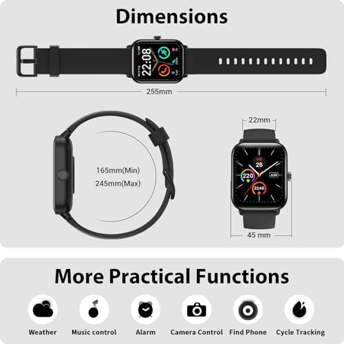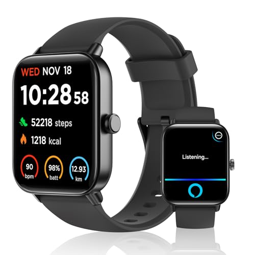 Tensky - ساعة ذكية للرجال والنساء بخاصية الرد واجراء المكالمات مع تطبيق اليكسا مدمج وبشاشة لمس 1.8 بوصة مراقب النوم ومعدل ضربات القلب والاكسجين 100 إعداد رياضي، مقاومة للماء IP68 لنظامي iOS واندرويد، أسود