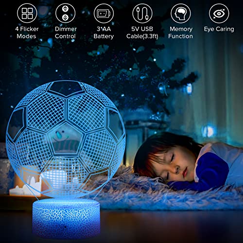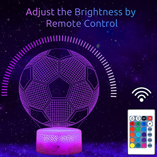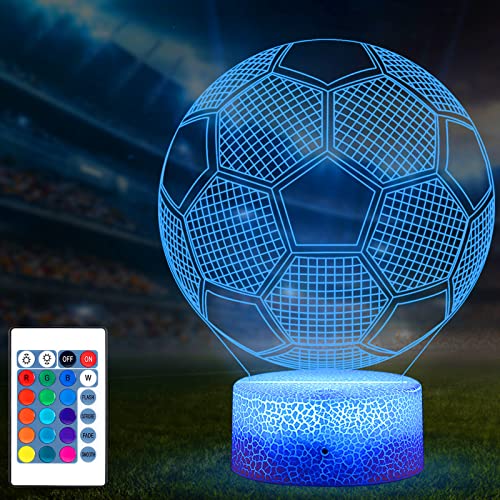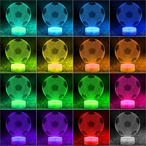 TENVAVA - مصباح وهمي بتصميم كرة قدم ثلاثي الأبعاد من تينافا ليلي مع 16 لون متغير وجهاز تحكم عن بعد لأعياد الميلاد والكريسماس وعيد الحب فكرة هدية لمحبي الرياضة للأولاد والبنات