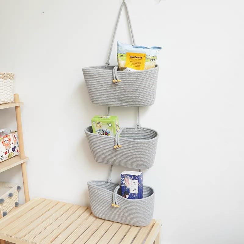 - *وظائف متعددة الطبقات*: كل طبقة من السلال المعلقة الخاصة بنا مصنوعة من القطن الخالص، مما يوفر حل تخزين متين وصديق للبيئة. مع ثلاث طبقات قابلة للفصل، يمكنك تنظيم مجموعة متنوعة من العناصر مثل المناشف والألعاب ومستحضرات التجميل والحفاضات وأكثر من ذلك، مما يجعلها مثالية لأي غرفة في منزلك.