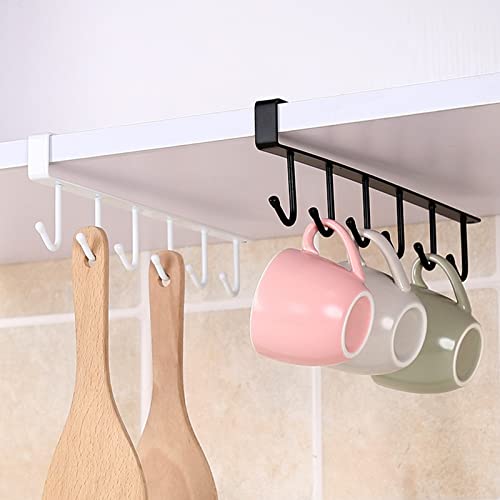 Spaceshoop - شماعة بخطافات لتعليق المج أسفل الدولاب خطاف تخزين أكواب المشروبات وأكواب القهوة متعدد الوظائف من دون مسامير حامل أدوات المطبخ رف خزانة الحديد المطاوع شماعات للمطبخ أبيض تبيبنج داي 6.0 رطل 6.0
