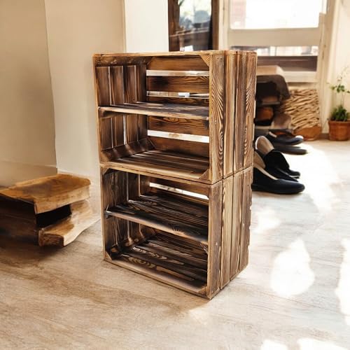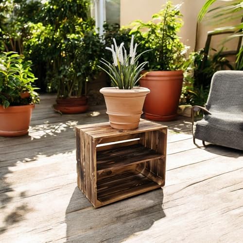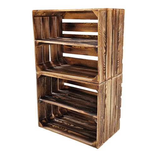 Teramico - صندوق خشبي مقاس 50 × 40 × 30 سم بمظهر كلاسيكي لخشب تم معالجته أو حرقه قليلاً - مجموعة صندوق لتزيين أي ديكور (قطعتين، رف طويل) من تيراميكو