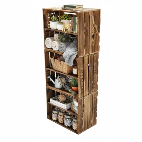 Teramico - صناديق خشبية معالجة باللهب، أقفاص فاكهة مع لوح متوسط ولوح رف متوسط لتخزين الأحذية من تيراميكو، (مجموعة من 50/3، رف طويل)